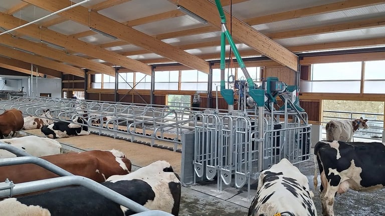Mit dem Neubau dieses Milchvieh-Laufstalls wurde ein durchdachtes Gesamtkonzept umgesetzt, das moderne Technik, effiziente Abläufe und optimale Bedingungen für Tier und Mensch vereint.